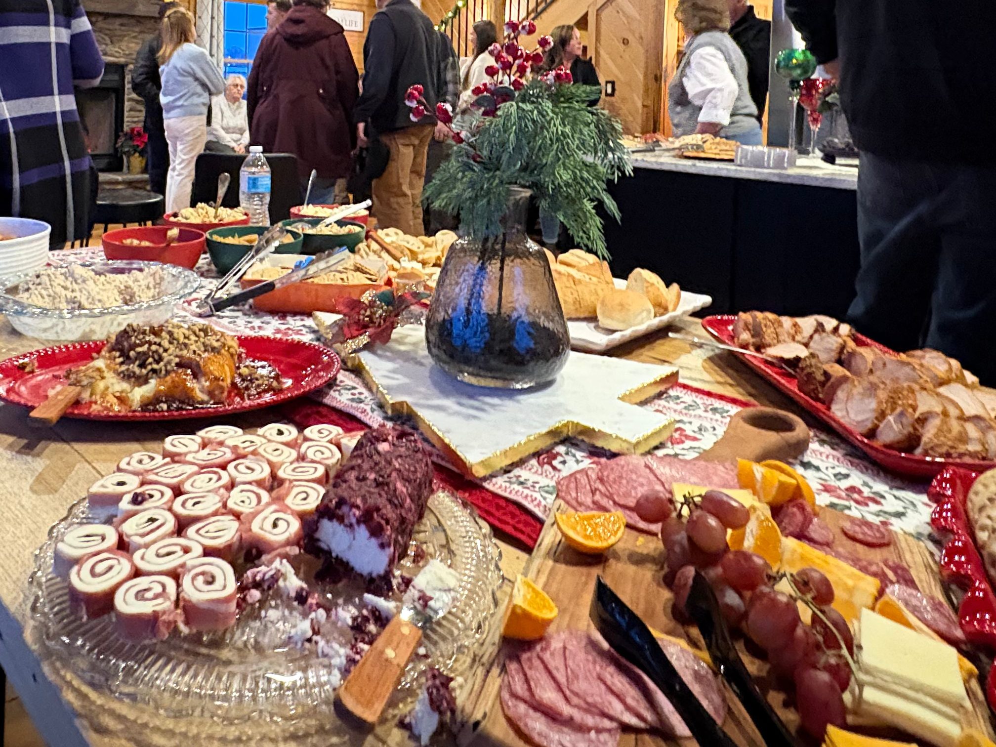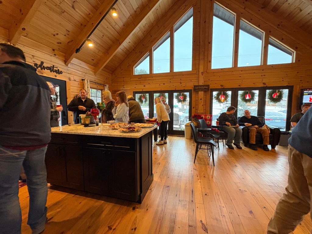 Guests enjoyed hors d’oeuvres, treats, and plenty of holiday warmth woven throughout the cabin from the fireplace. The model home was decorated in full Christmas charm, showcasing the craftsmanship Eagle Point is known for, from the locally milled white pine to the beams, the tongue and groove, and the inviting cabin ambience that instantly puts you at ease.